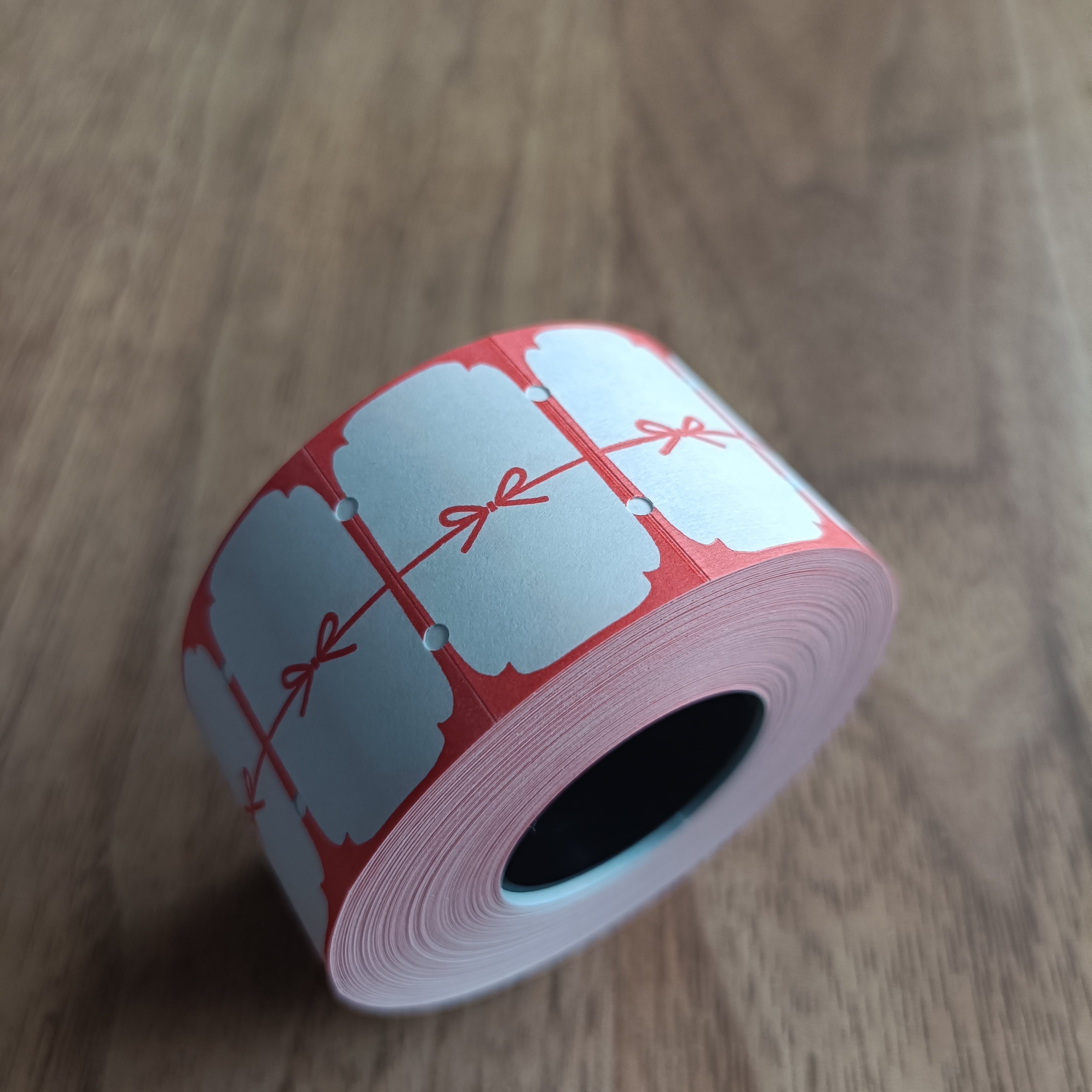 赤い枠に蝶結びの「のし」柄ラベラーロールシール