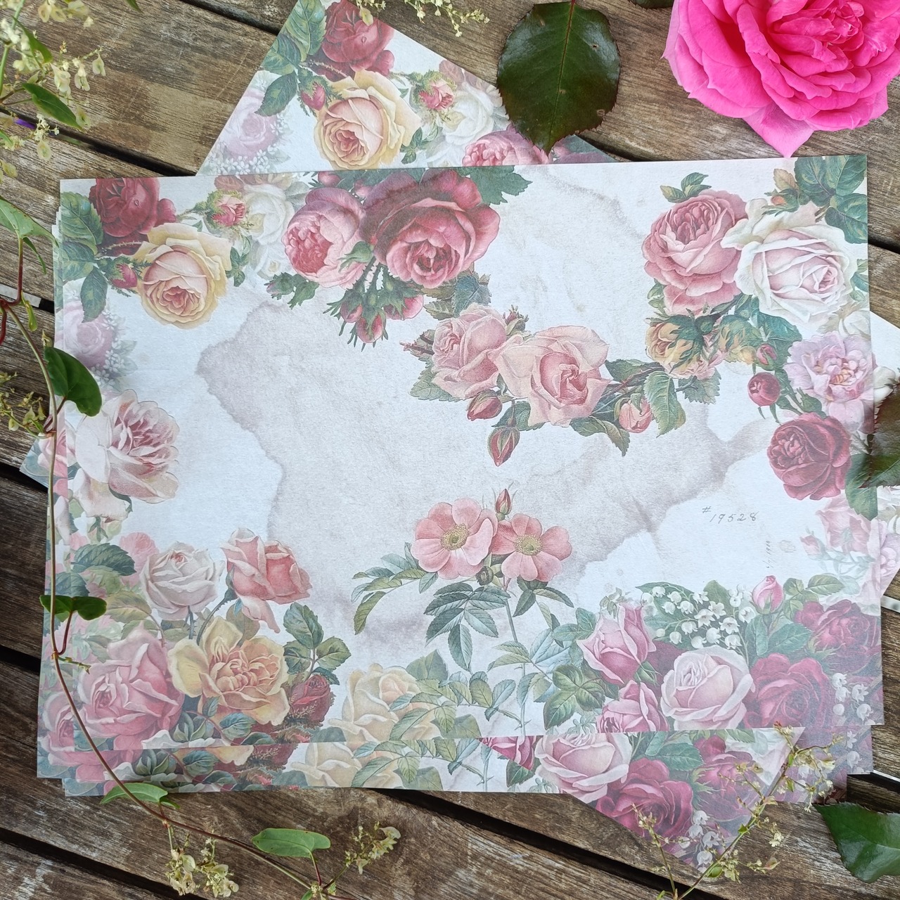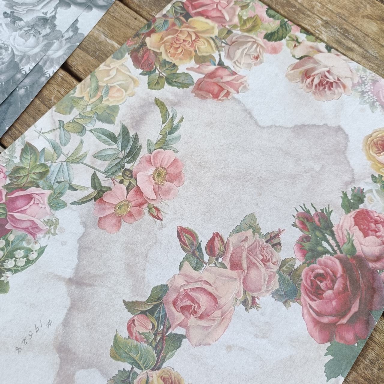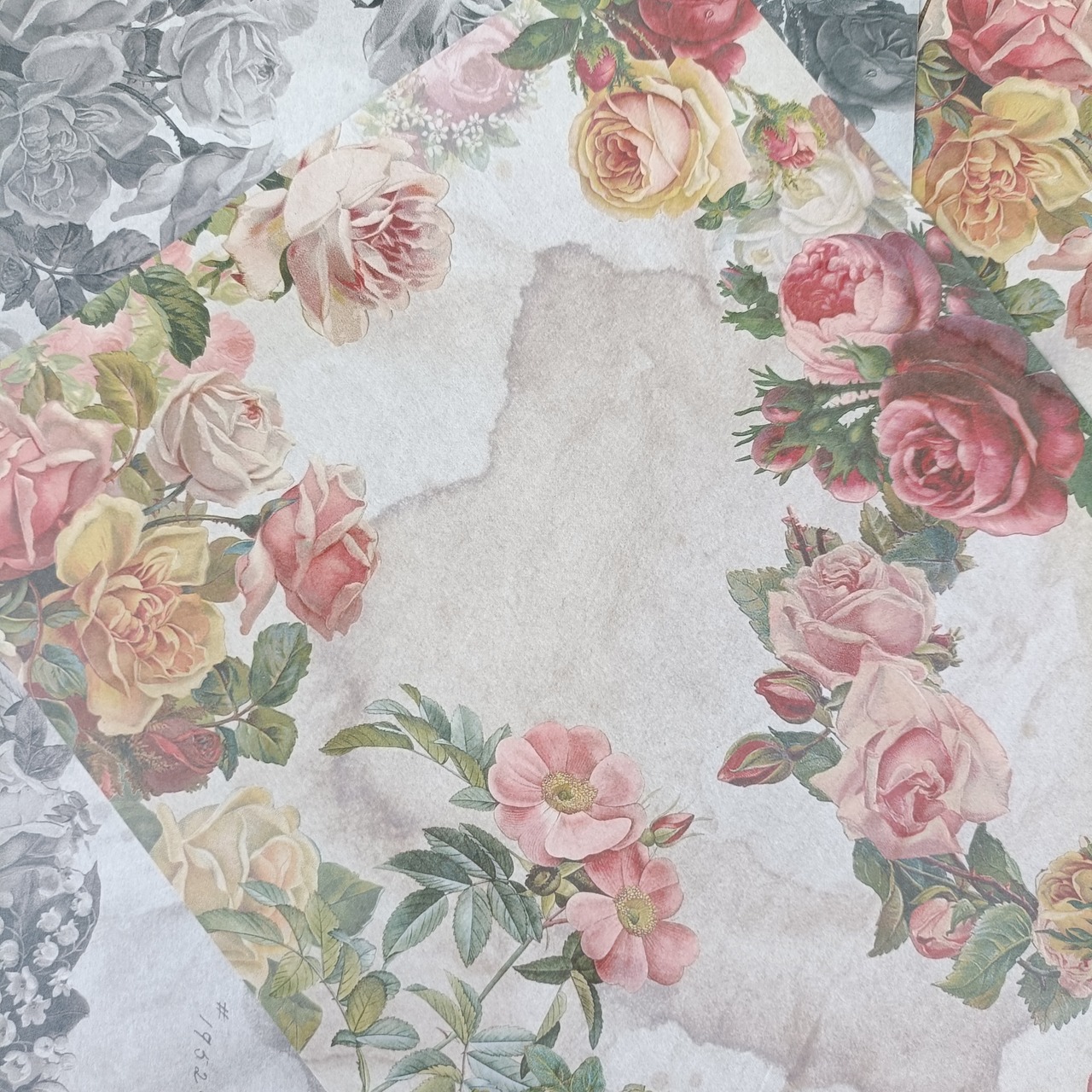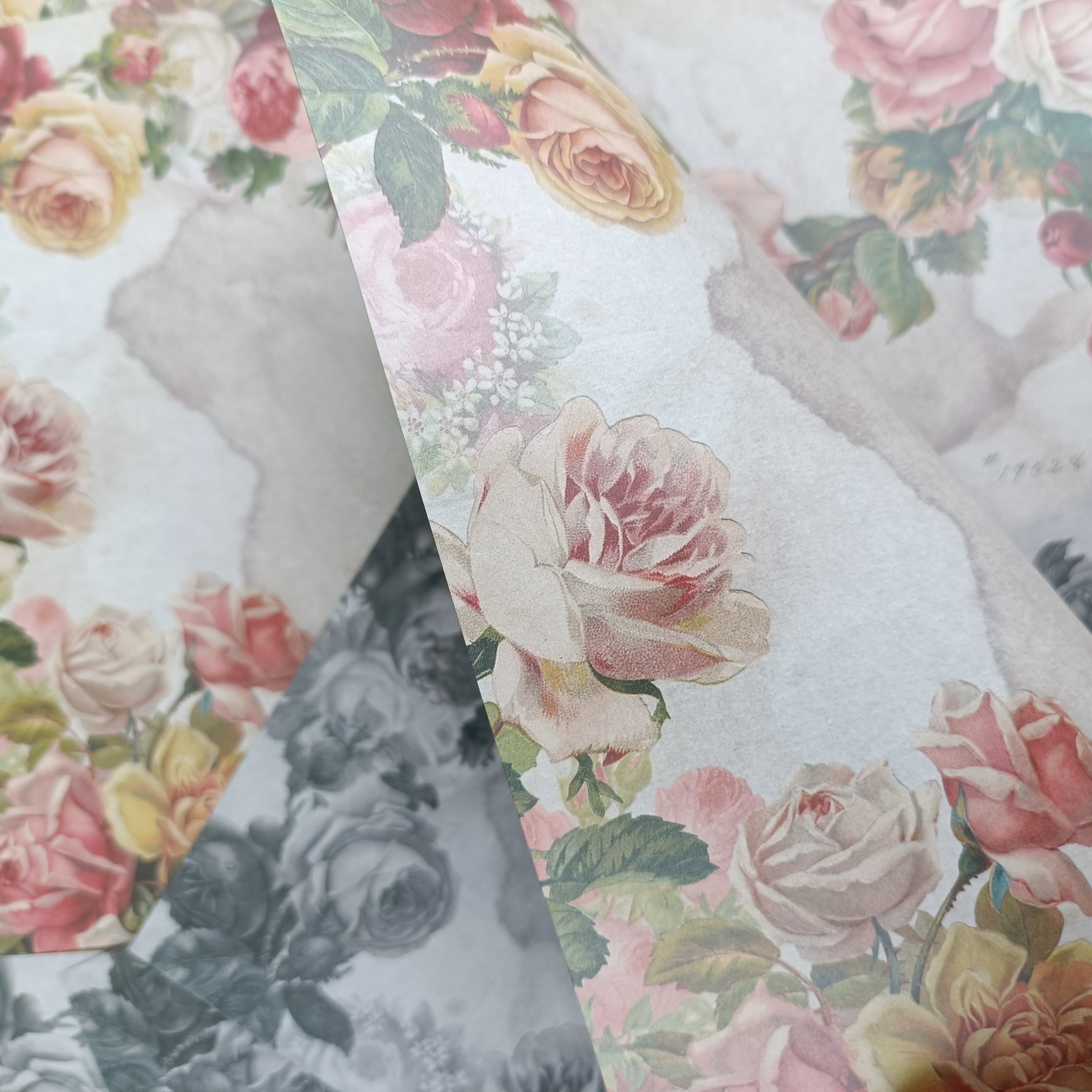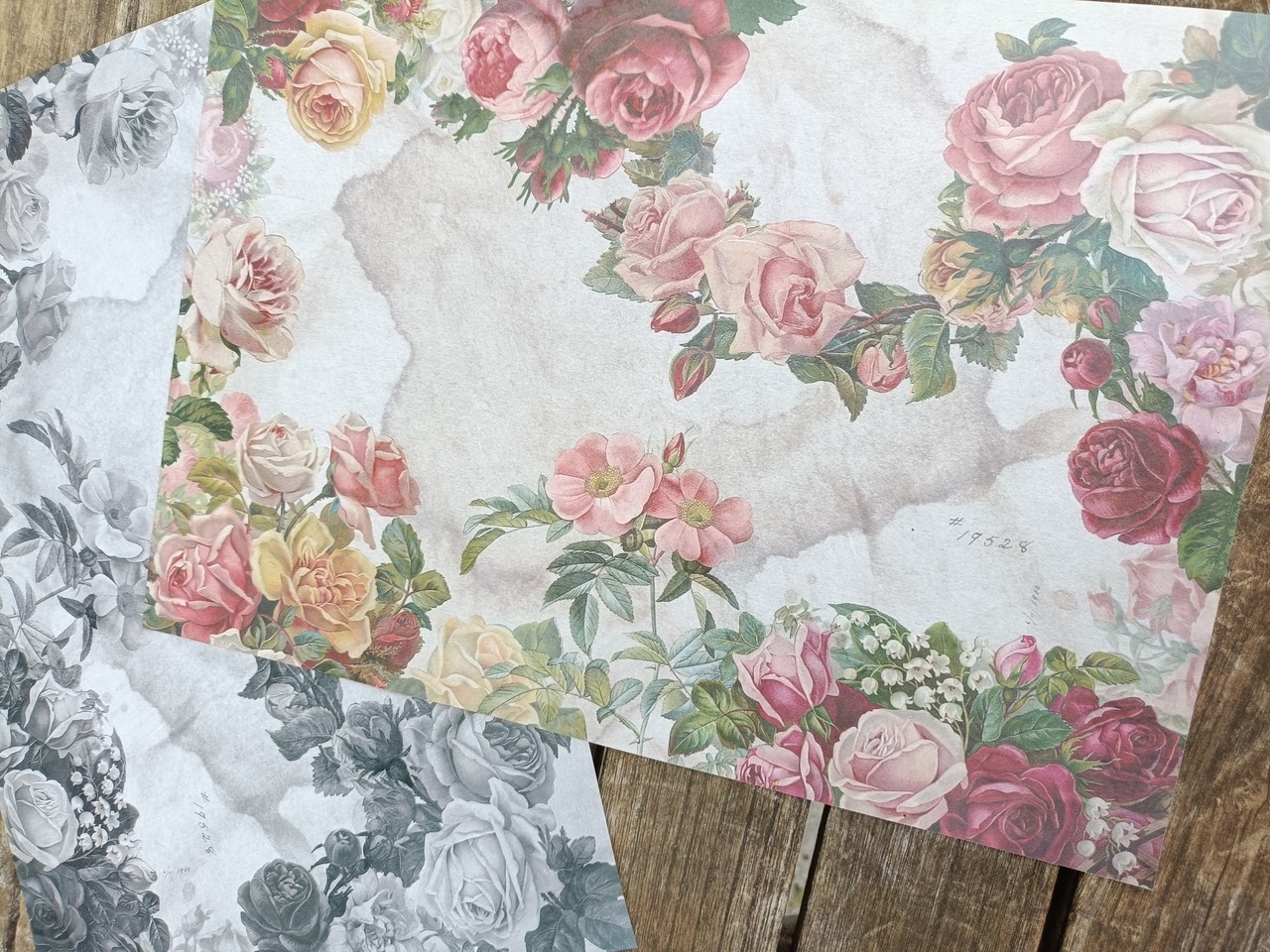 アンティークなバラがエレガントなコラージュデザインペーパーです。