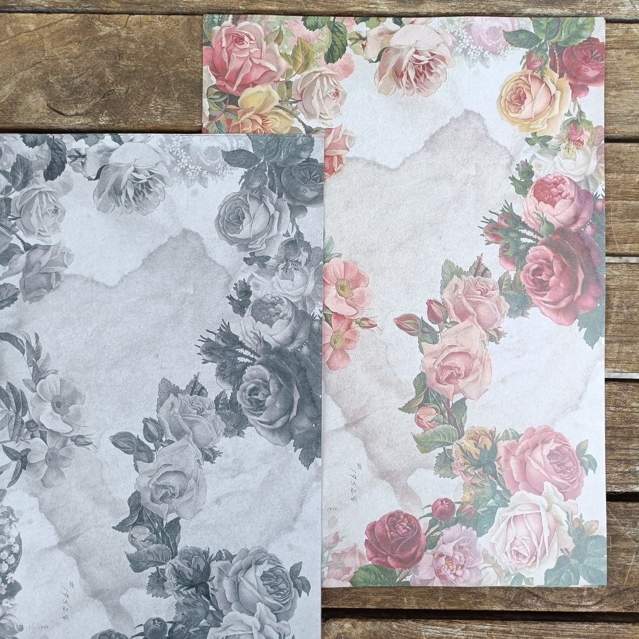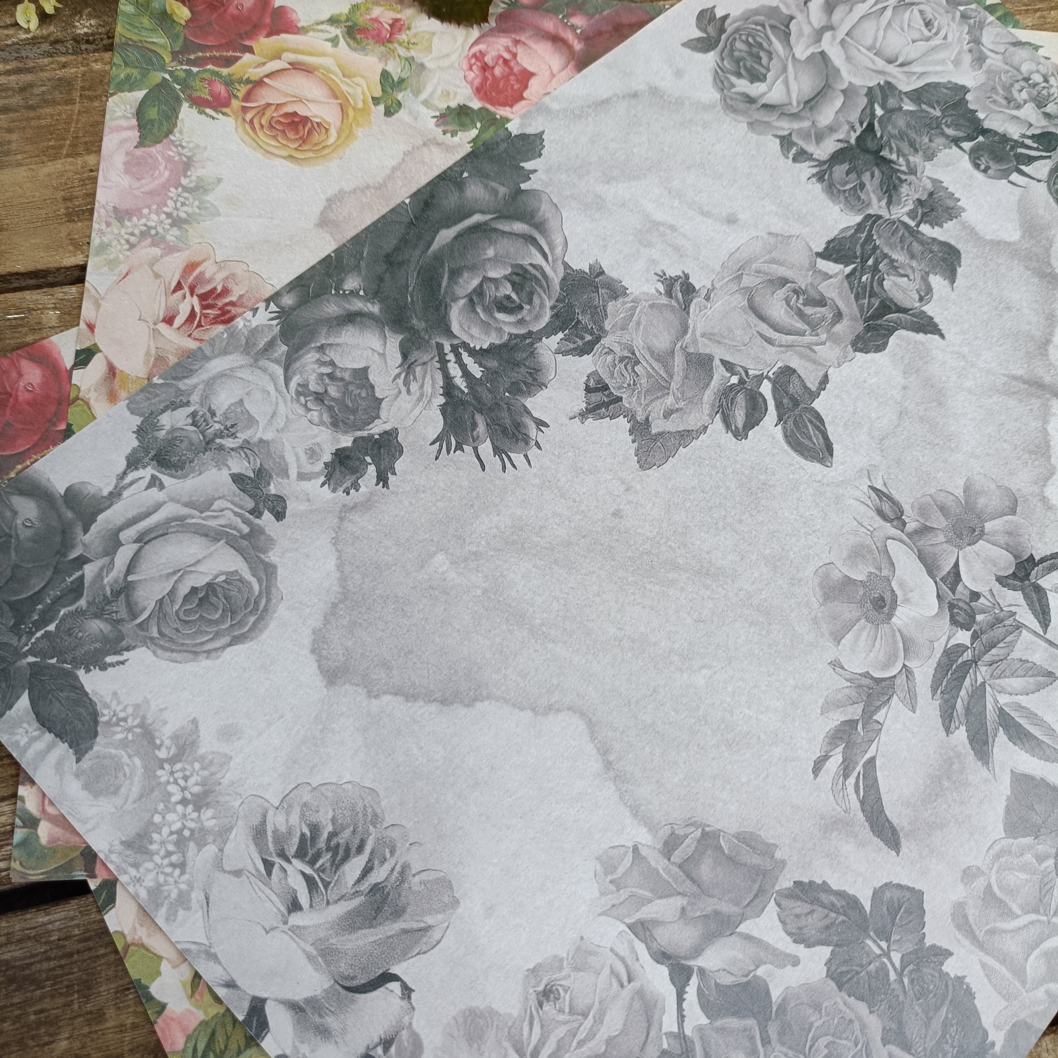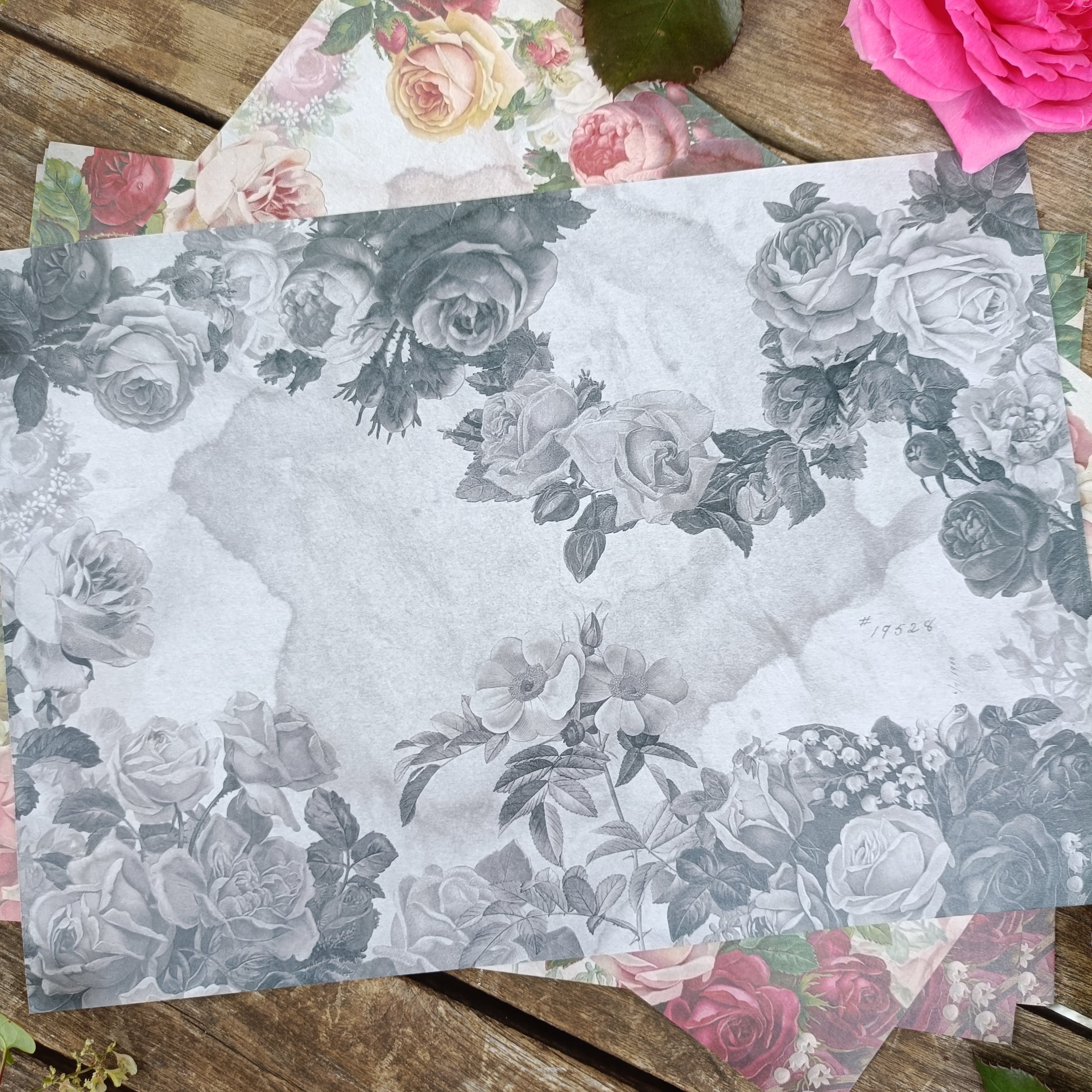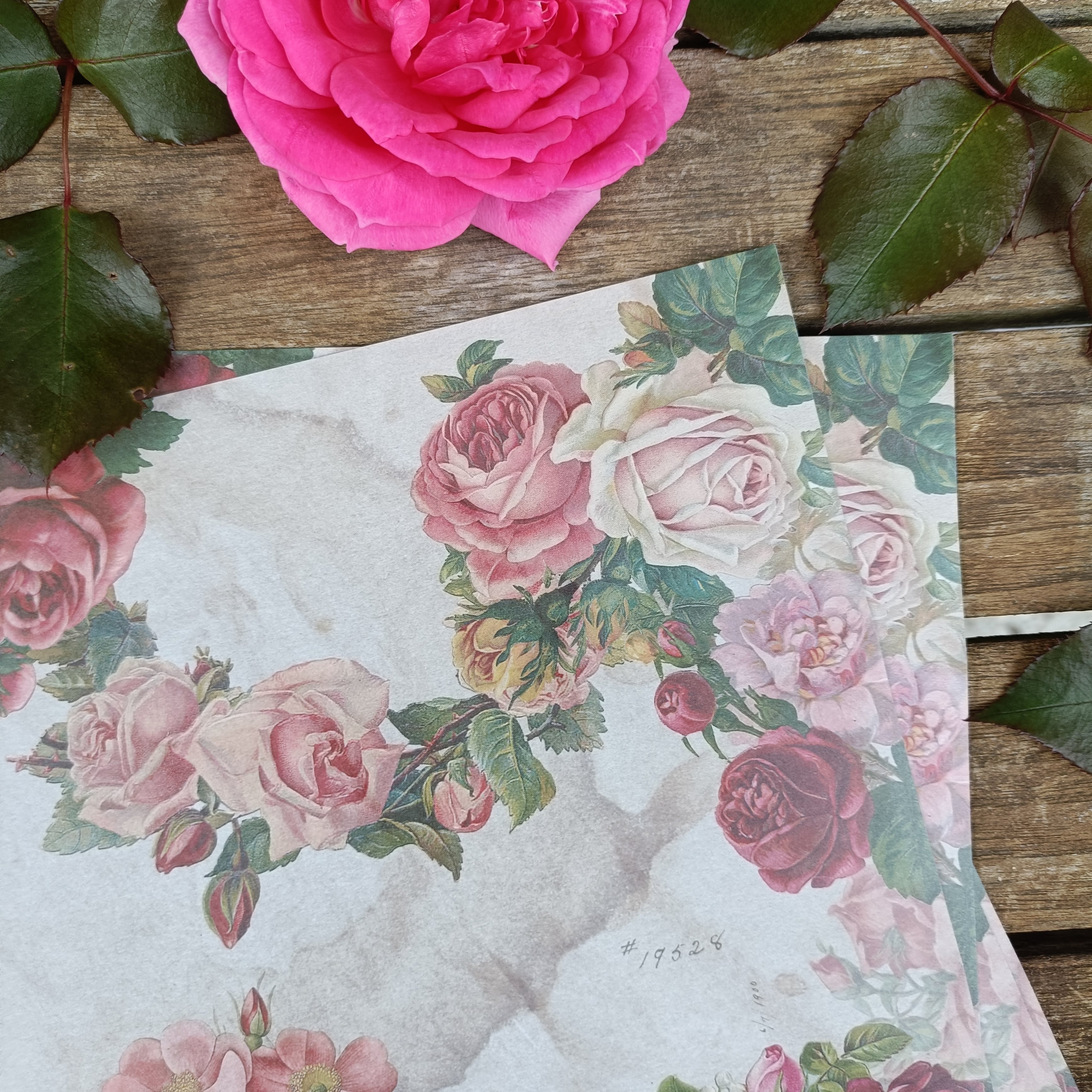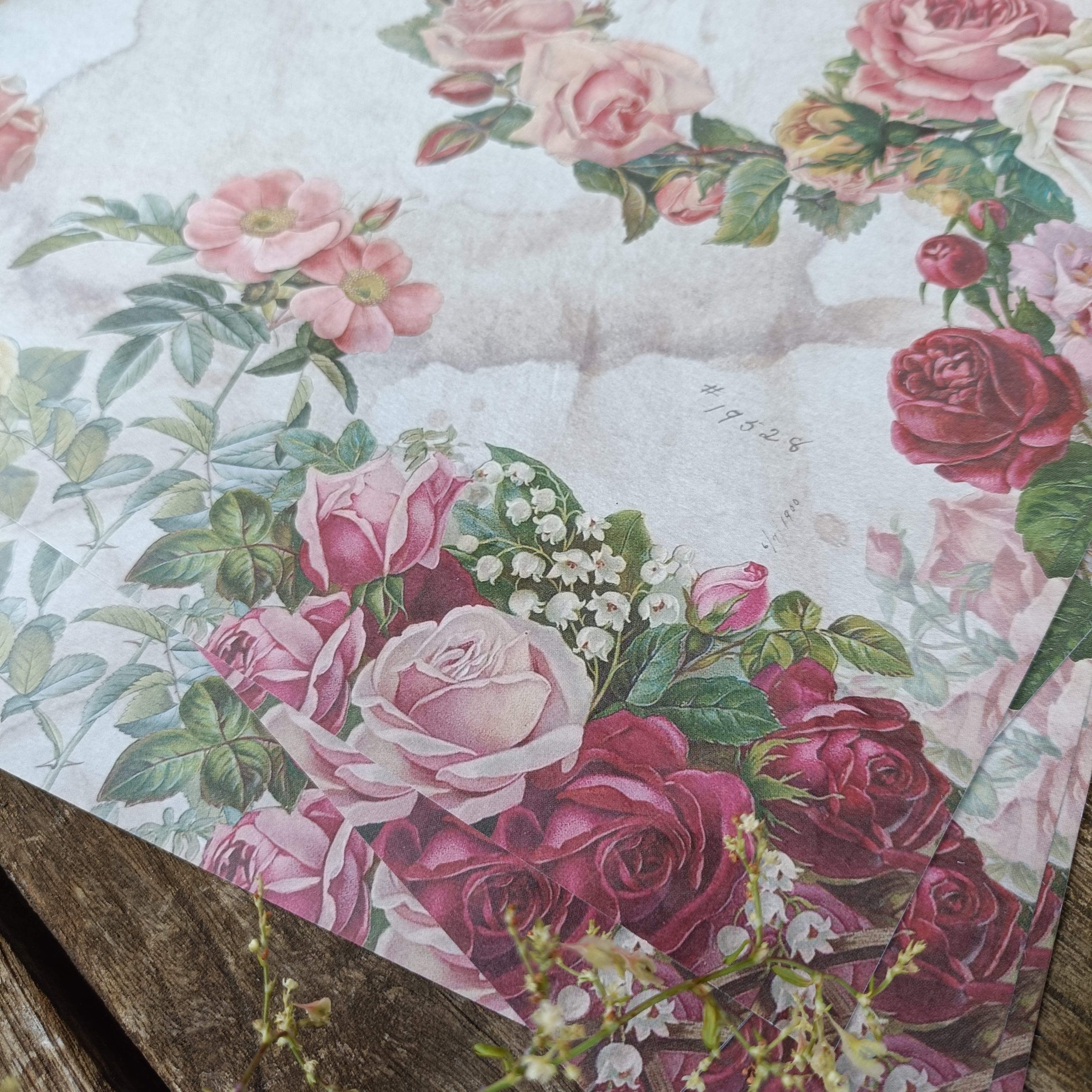 アンティークなバラがエレガントなコラージュデザインペーパーです。