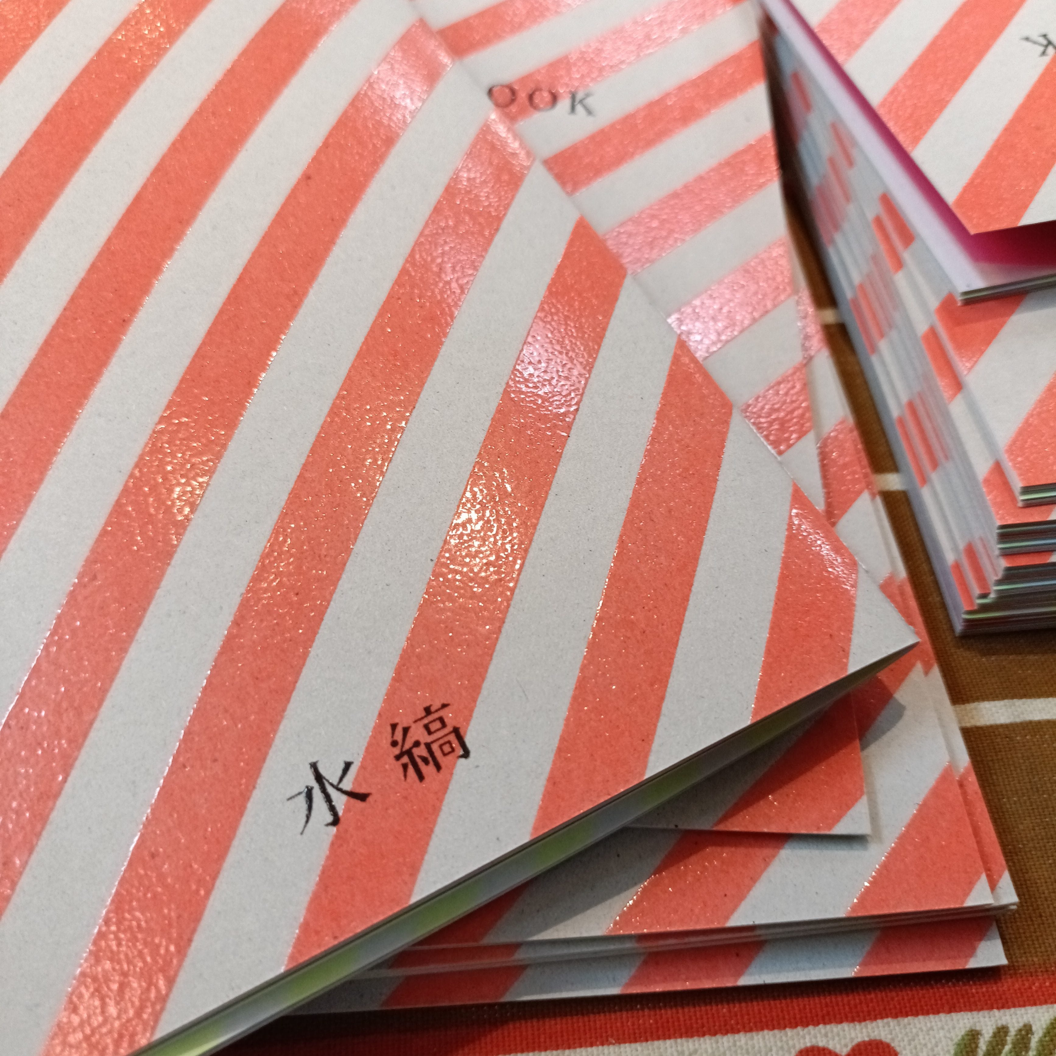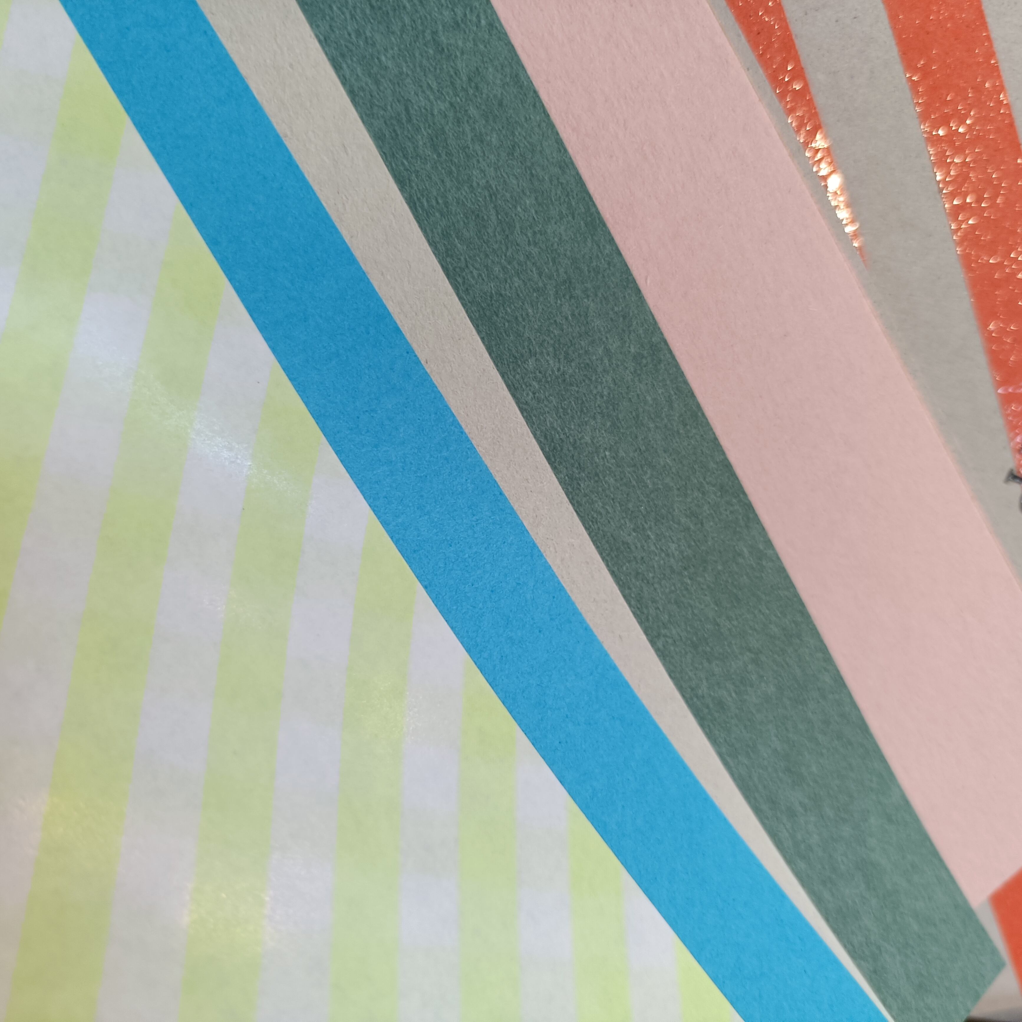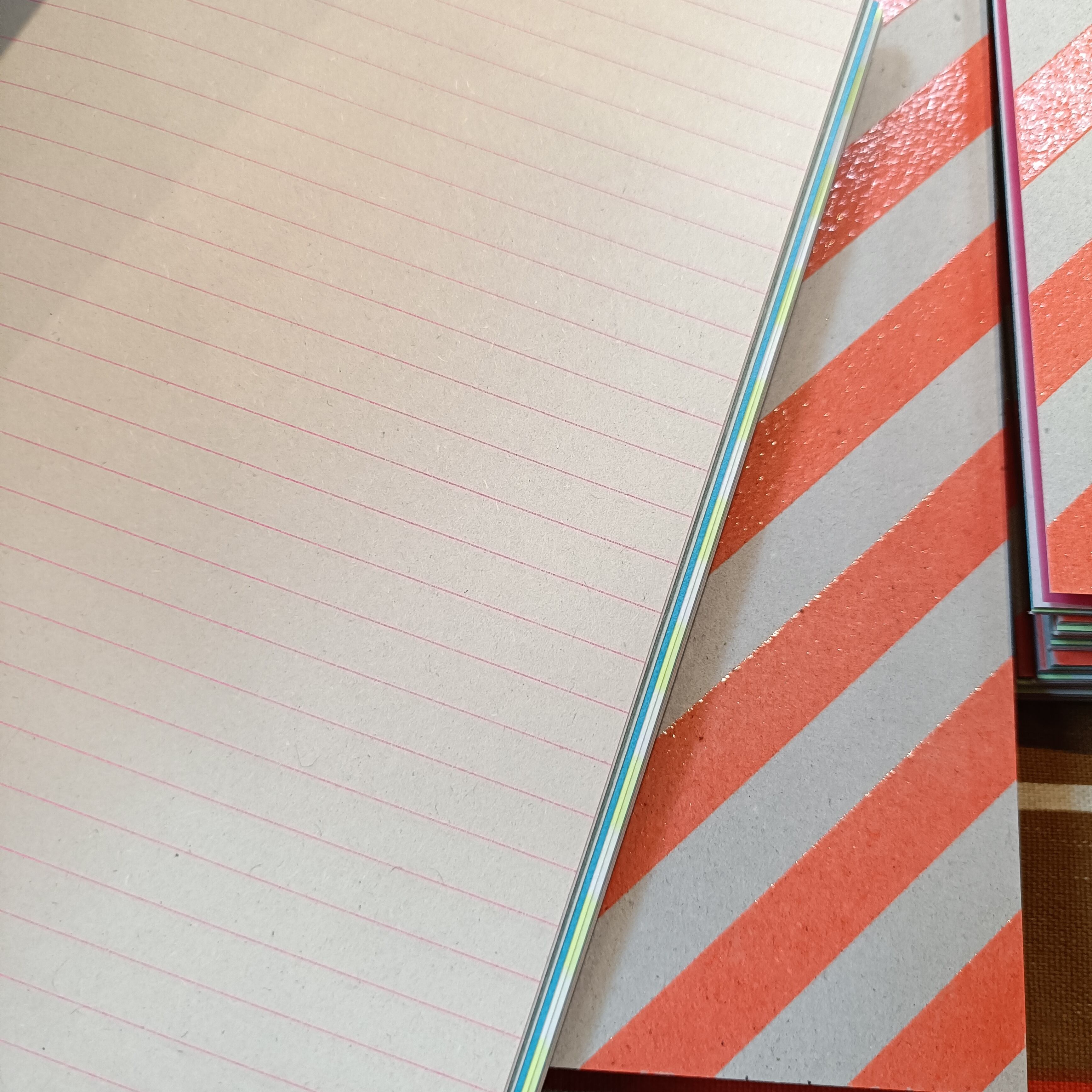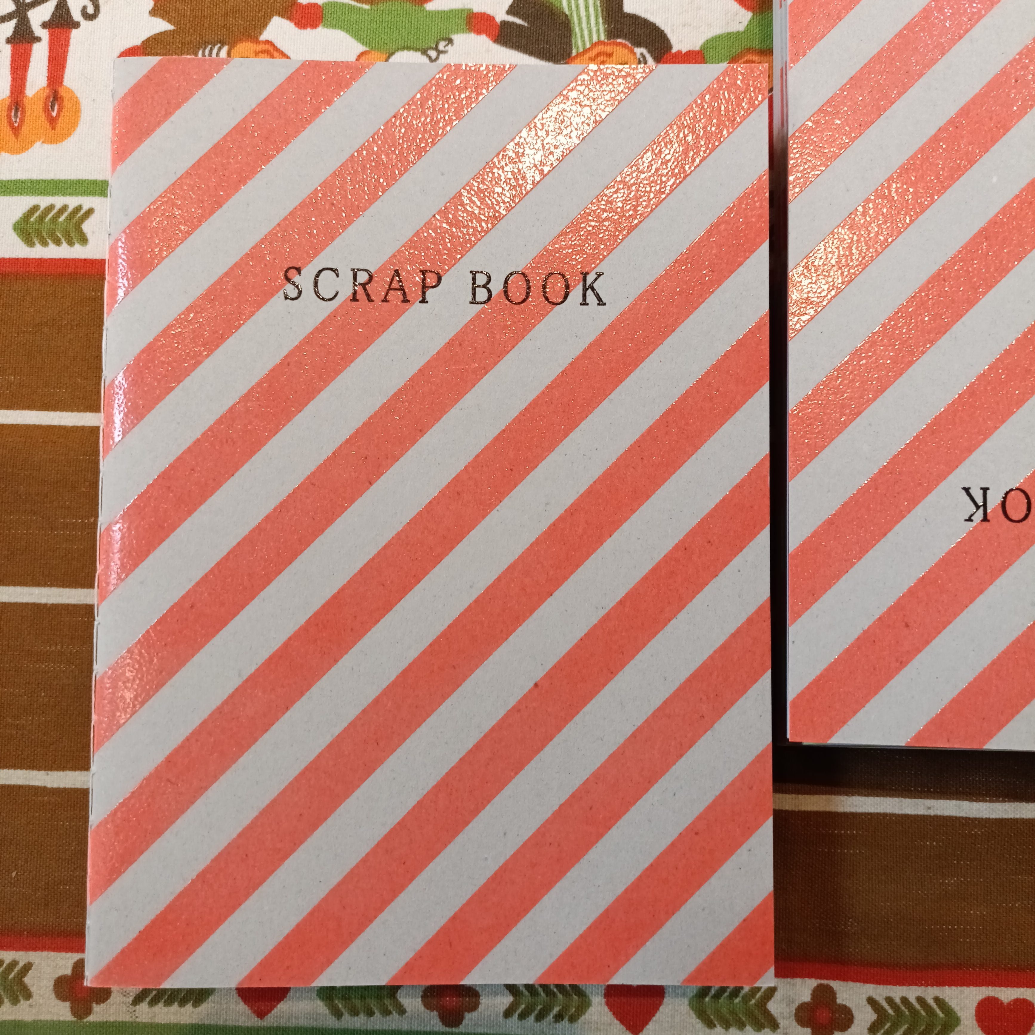 A5サイズより少し小さなスクラップブック。パキッとした色のストライプ柄の表紙が可愛いです。