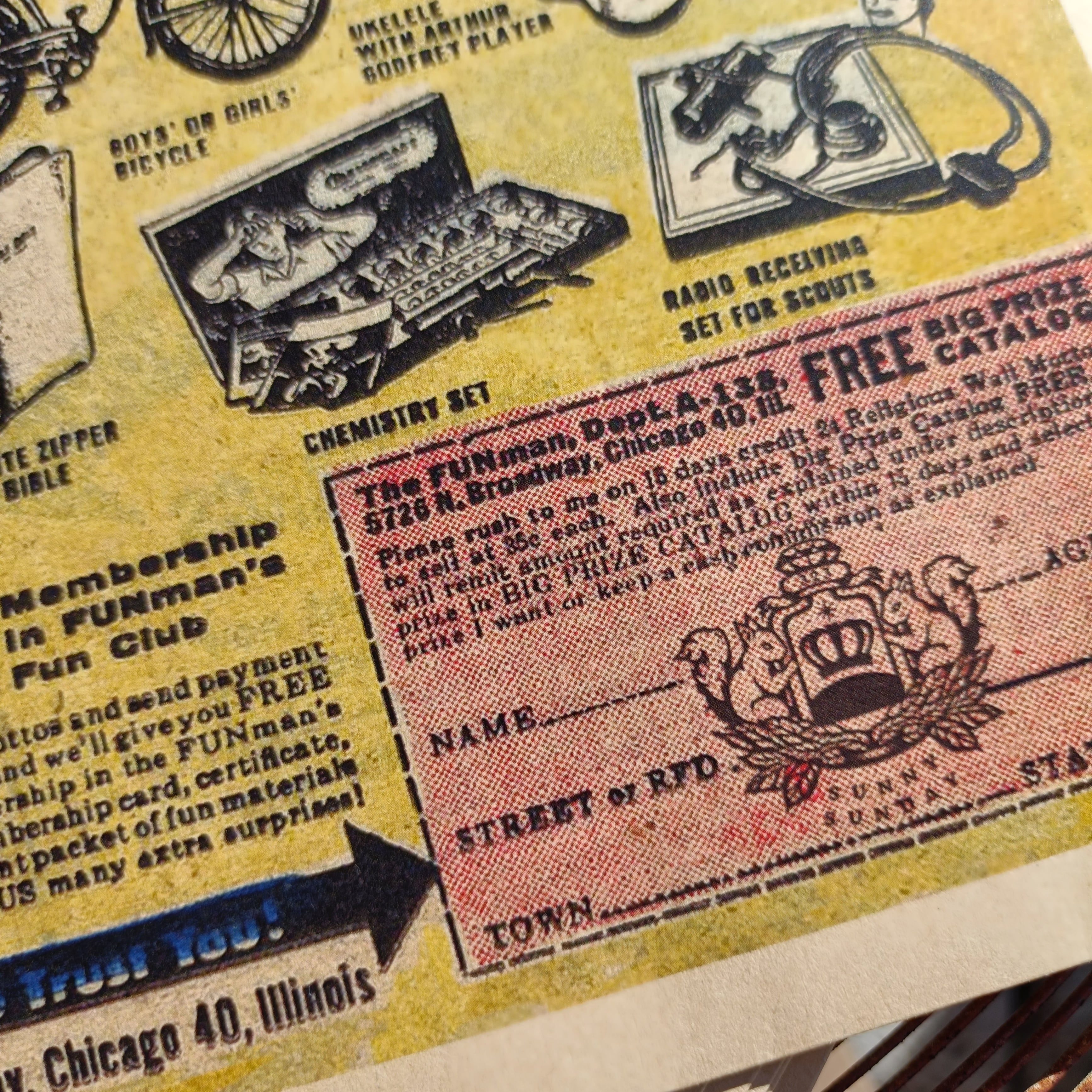 アメリカの古い広告でしょうか⋯景品応募的な賑やかなデザイン
