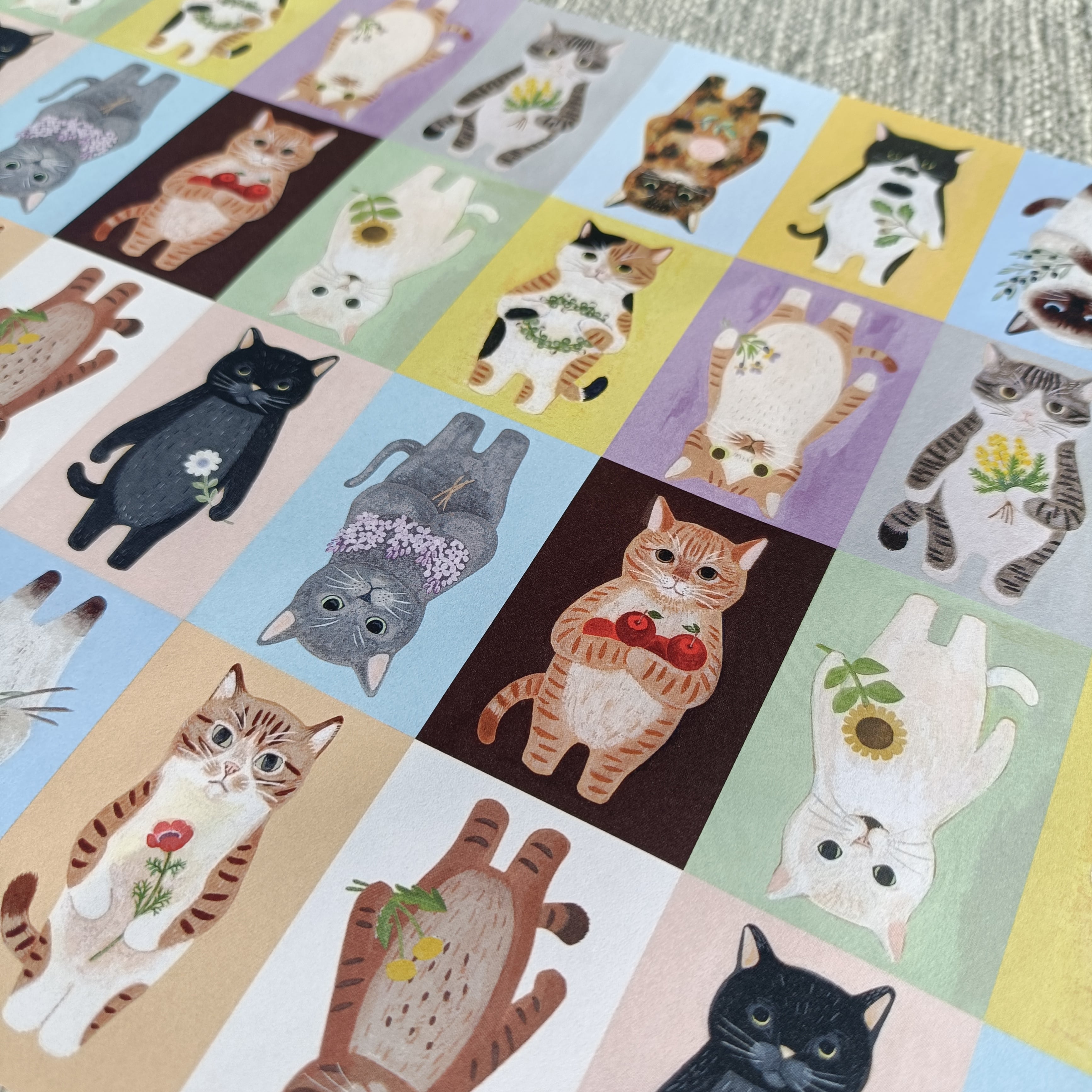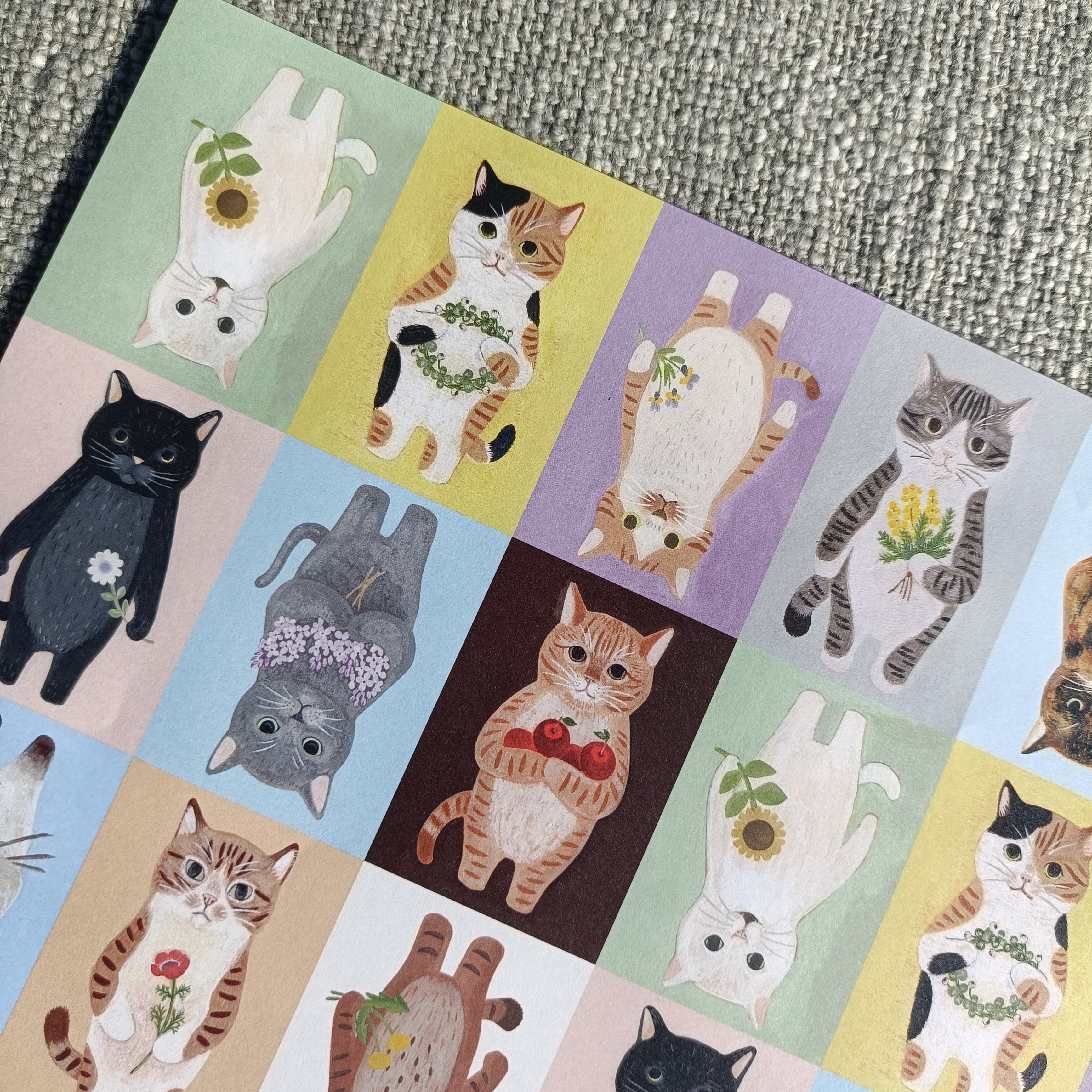 絵本のなかにいるような猫たちがたくさん並んでいるペーパーです。