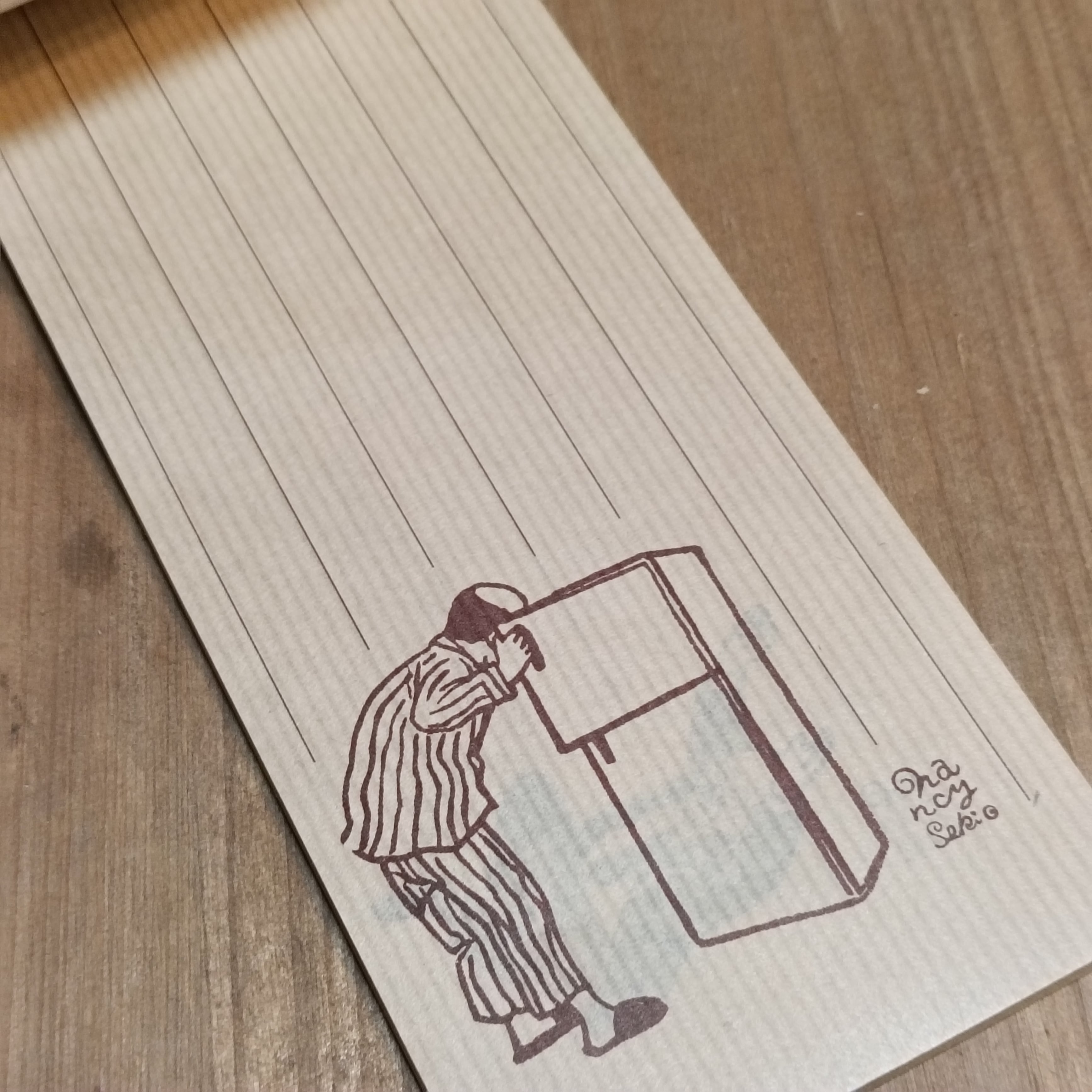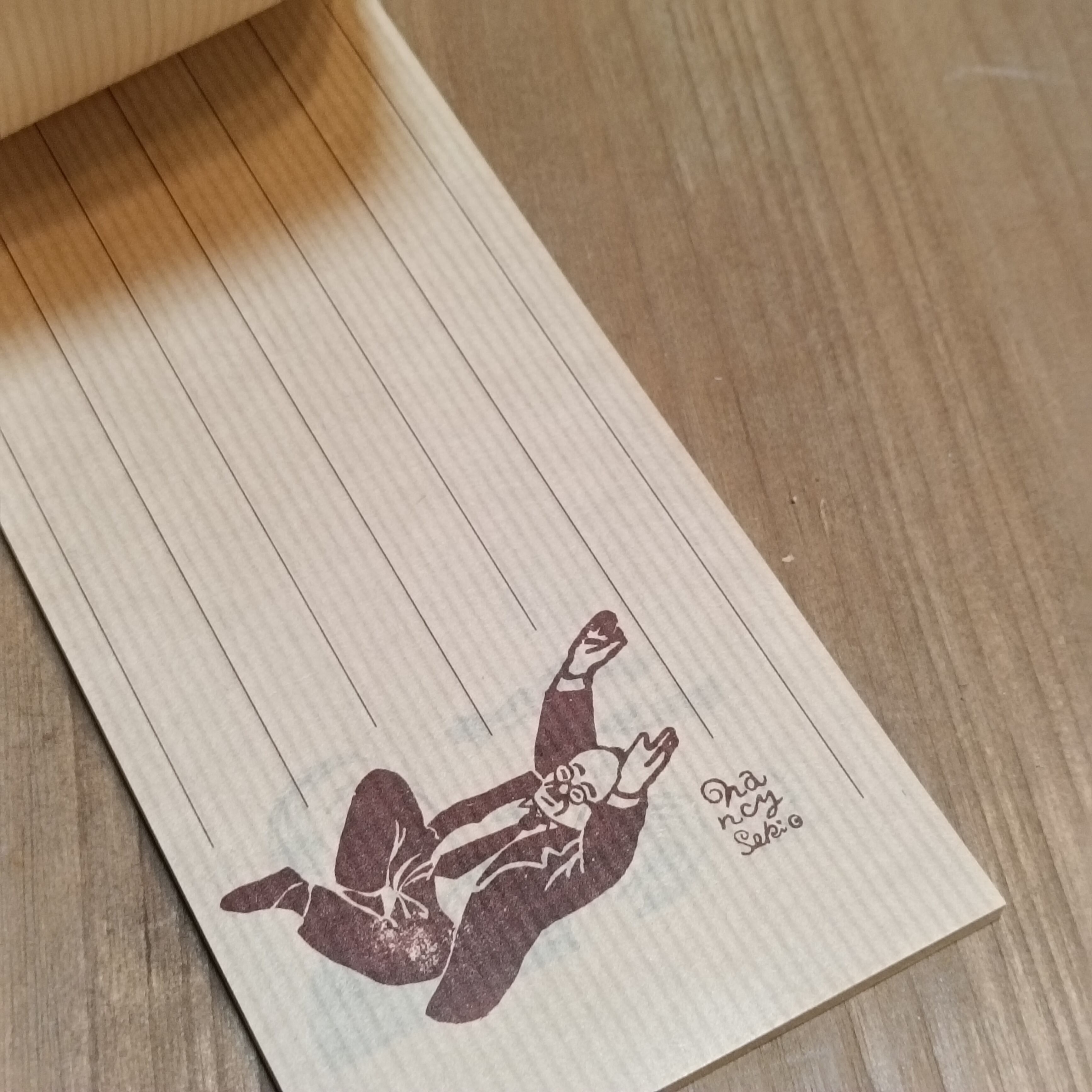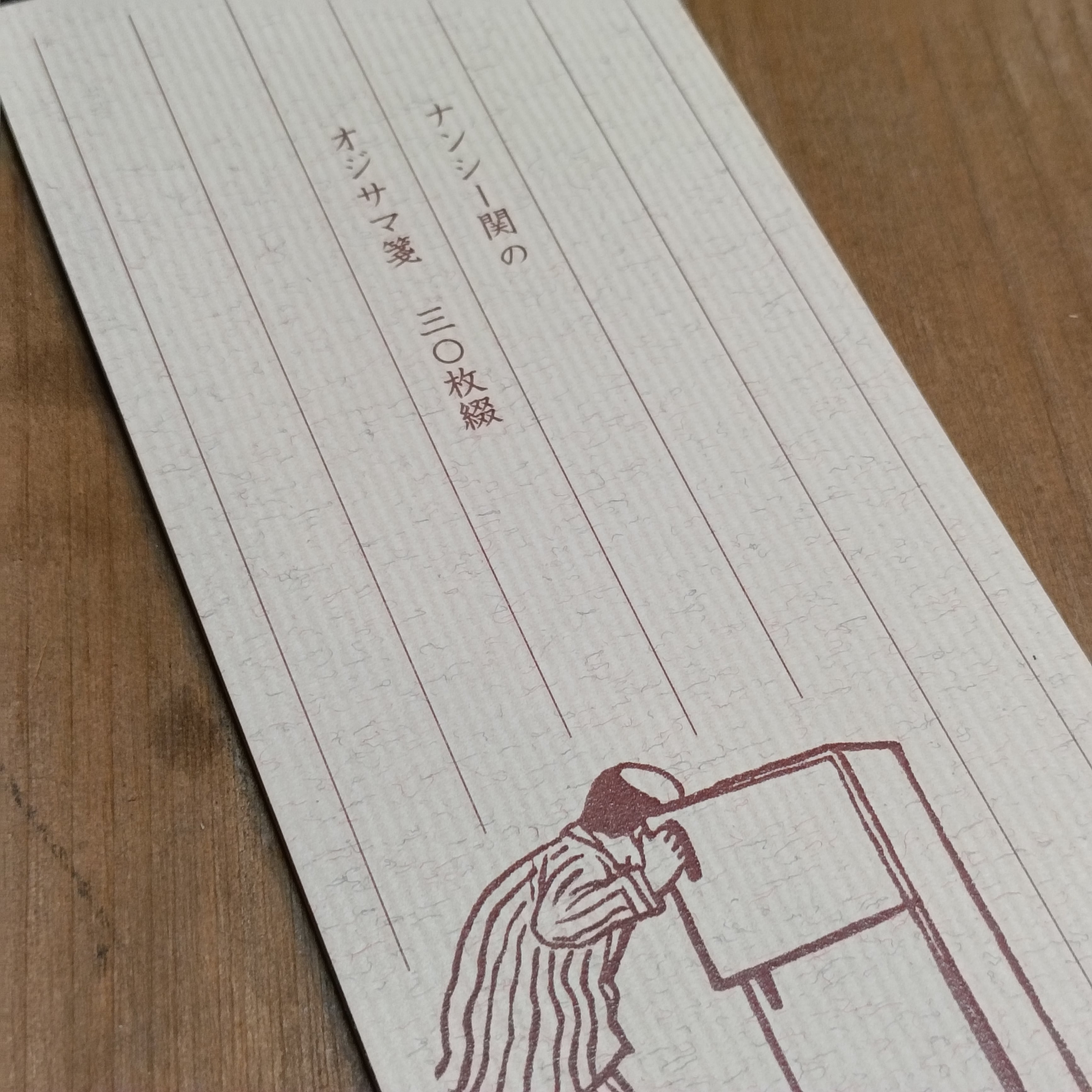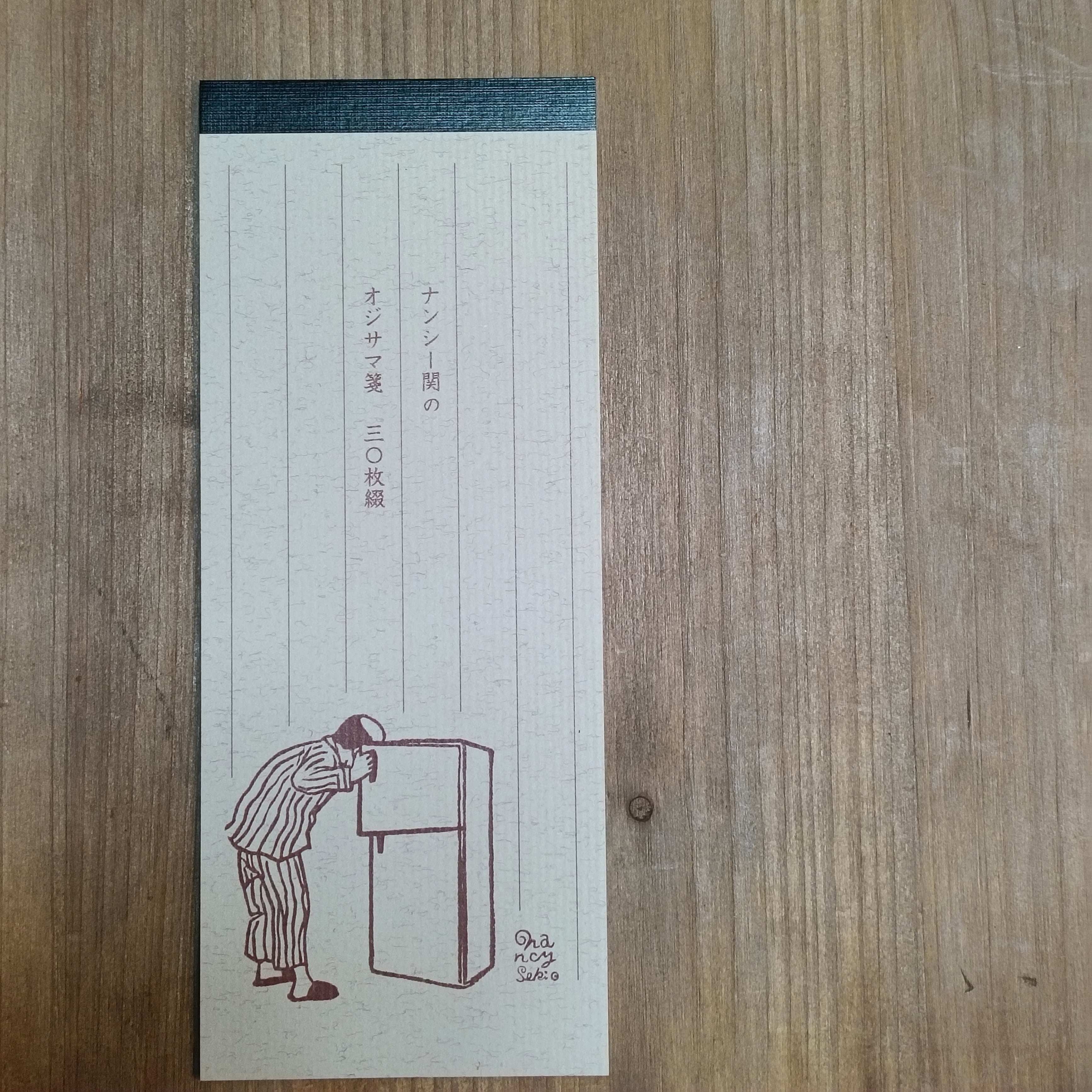 オジサマの図案と、筋入りハトロン紙のペラペラ感が哀愁マシマシの一筆箋です。
