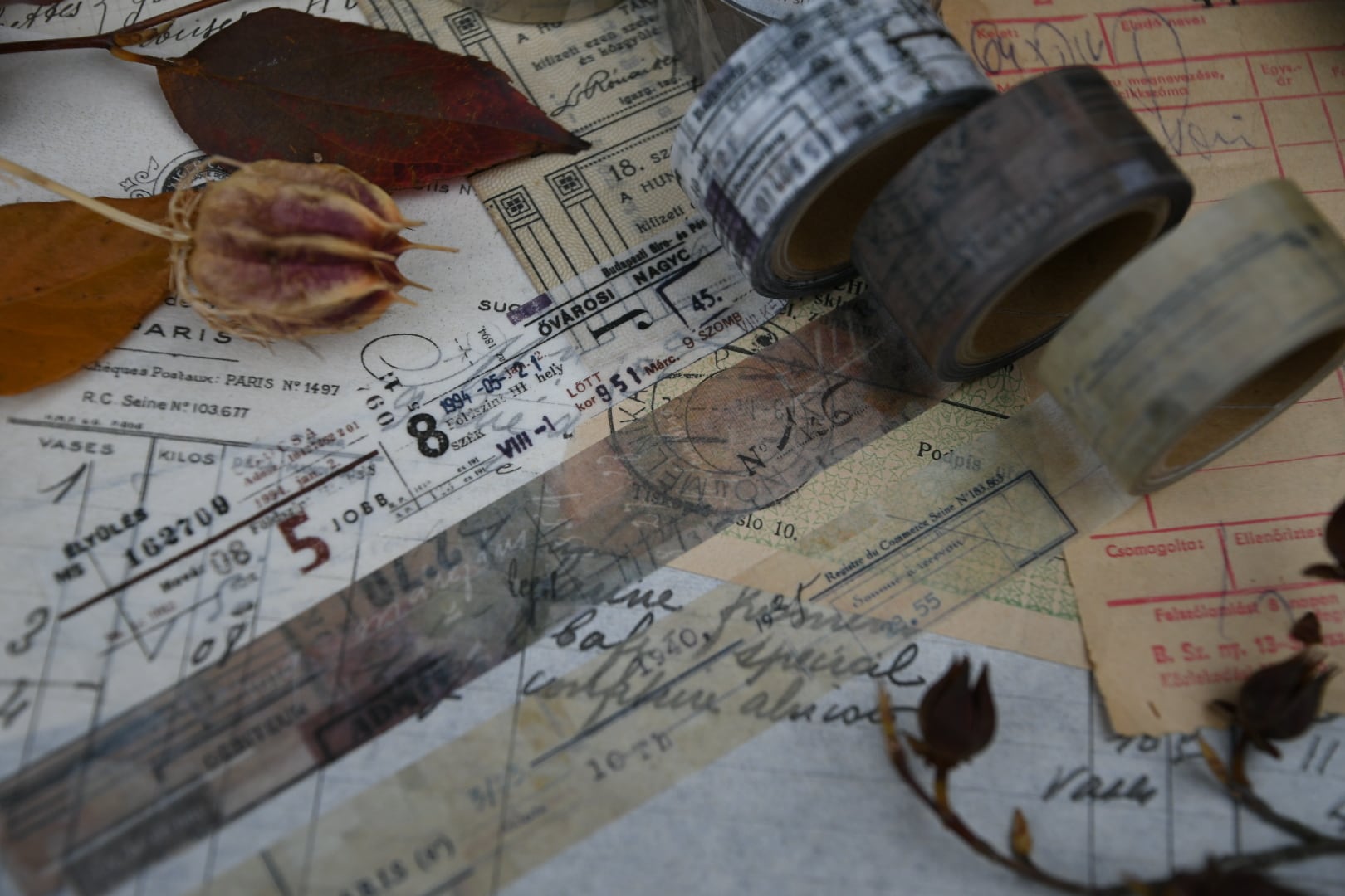 アンティーク素材を貼り合わせ、にじみやスレを活かしたデザインにしました。