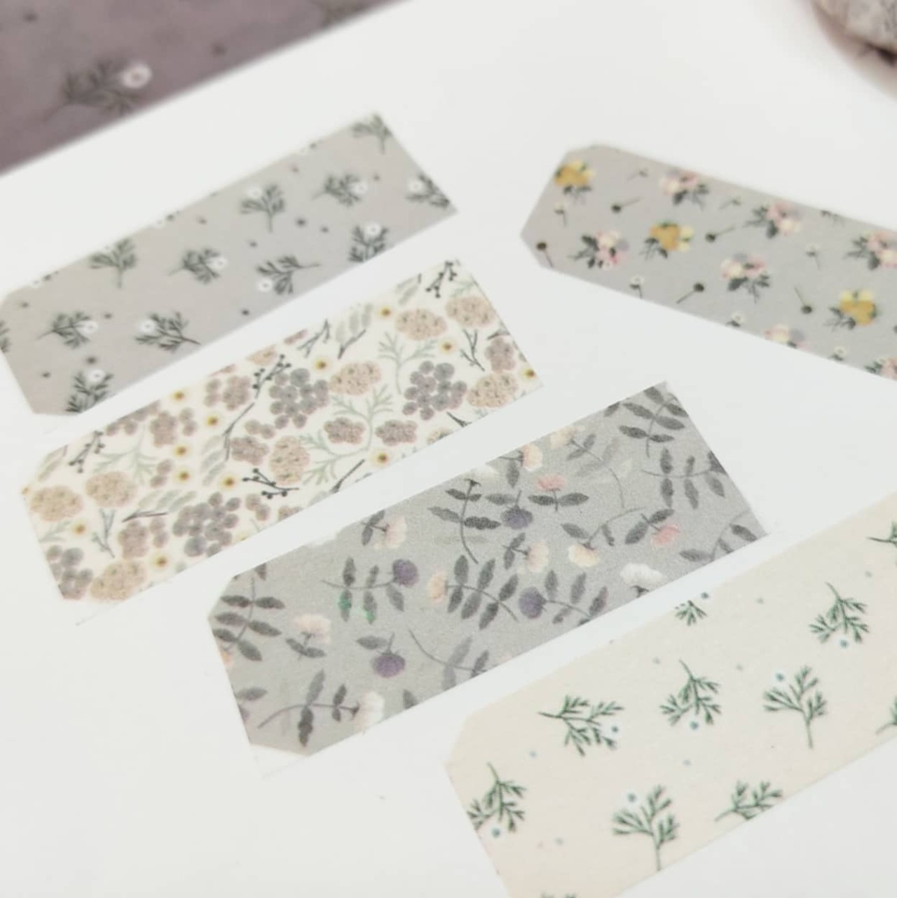 落ち着いた花柄のタグ型(ダイカットではありません)のマスキングテープですので、ちょっとワンポイントに貼ったりしても♫