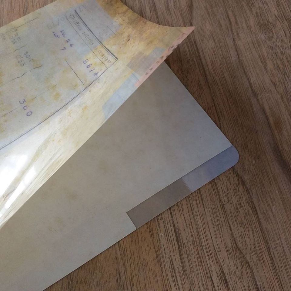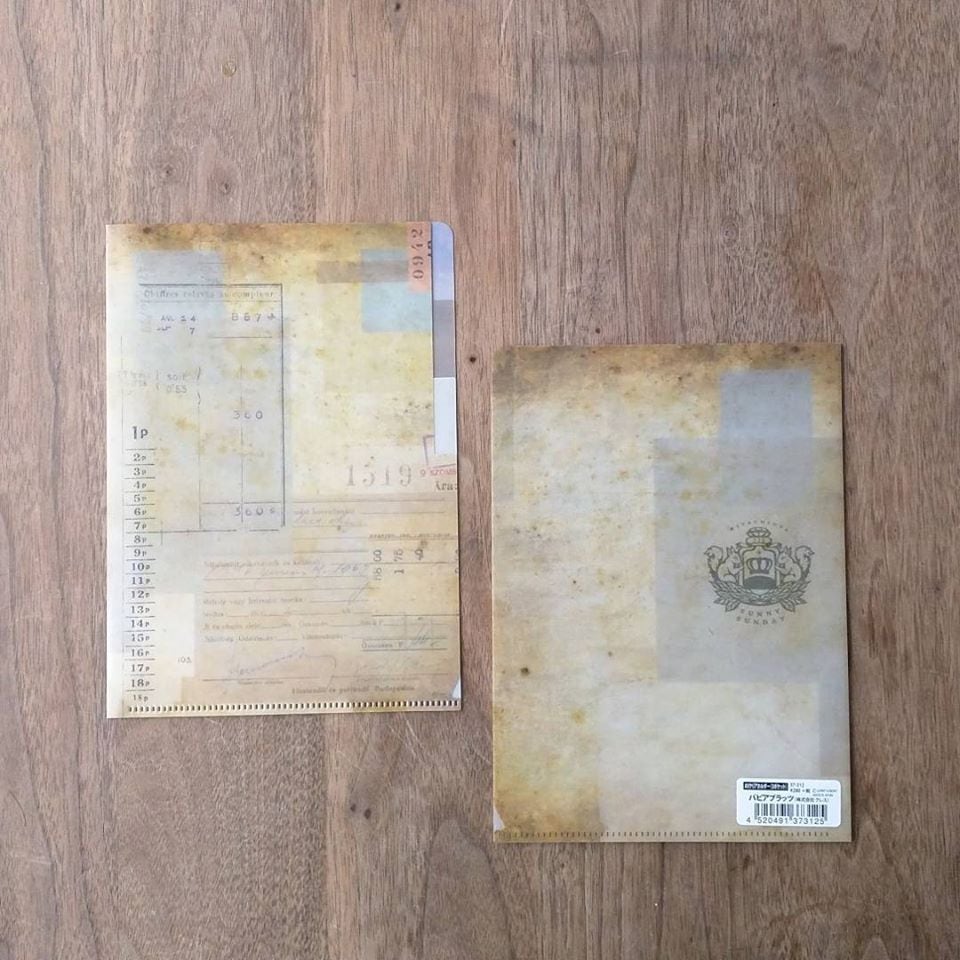 クリアフォルダーで汚れて加工や、コラージュされているものはなかなか見かけたことがなかったので、面白い仕上がりになりました!中にチケットやお気に入りのカミモノを入れて保管したり・・・